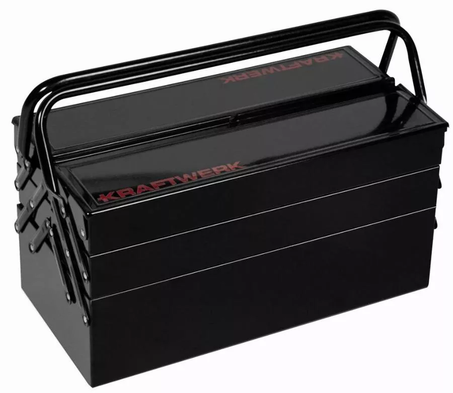 - Jeu d’outils universel 106 pièces dans une boîte à outils solide en métal, verrouillable avec cadenas.
