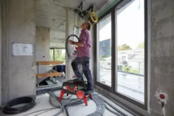 - L’encoche en V avec l’échelle graduée dans le couvercle du boîtier facilite le sciage d’une goulotte pour câbles sur le chantier, par exemple.
