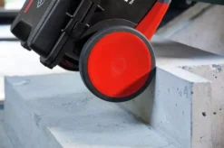 - Grâce à ses roues extra larges, il est facile de tirer le coffret derrière vous sur un terrain difficilement praticable ou sur des marches. Grâce à ses pieds rabattables, le coffret sert également de marchepied antidérapant.