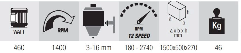 - Vitesse: 180 – 2740 tr / min