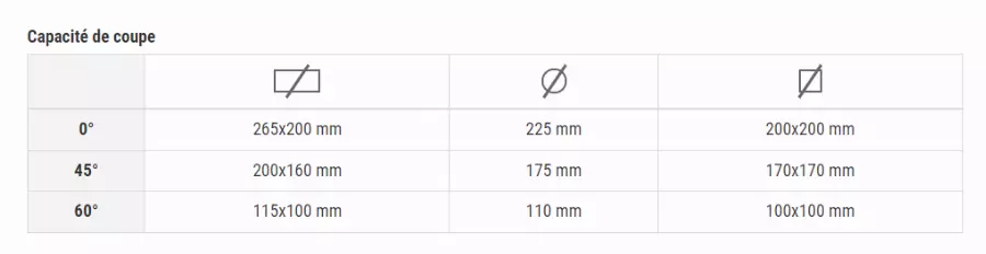 - Angle de coupe réglable de 0° à 60° gauche,avec butée à 45° et 60°