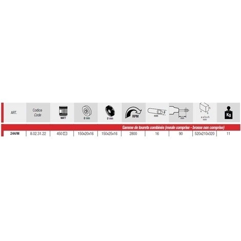 Touret Meule/brosse FEMI Gamme Industrie – 150x20x16mm – Sans Brosse – 244/M