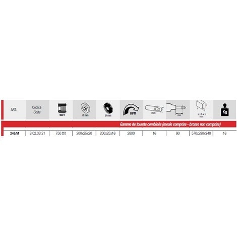 Touret Meule/brosse FEMI Gamme Industrie – 200x25x20mm – Sans Brosse – 246/M